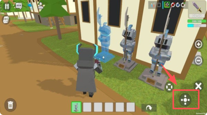 4、使用屏幕右侧的控制按钮移动角色,开始探索和建造。