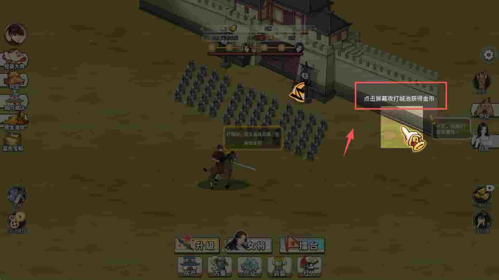 2、点击屏幕进行攻击,获取金币,积累资源以增强实力。