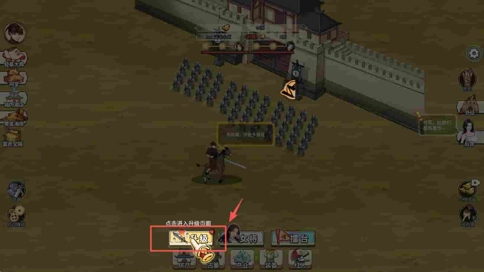 3、点击“升级”按钮,提升角色等级,增强战斗力和收益。