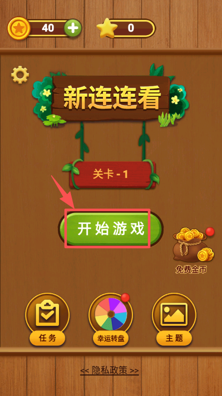 3、领完奖励回到主界面,点击绿色的 “开始游戏” 按钮,就能进入关卡 1 的连连看游戏界面。