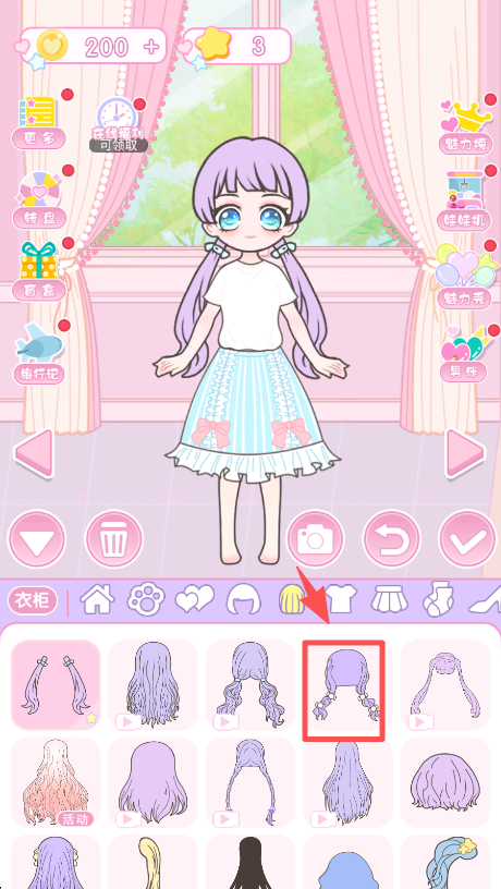 2、切换到发型栏,找到想要的双马尾发型样式并点击,完成角色发型的更换。