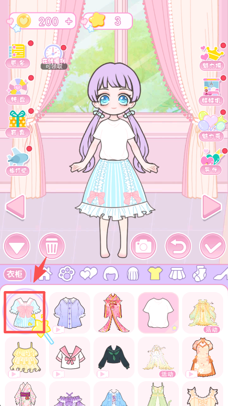 1、核心换装操作:进入衣橱界面,可从发型、衣裙、鞋袜到首饰进行逐件选择,通过直观拖拽即可轻松完成穿戴与更换。