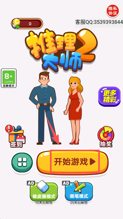 1、在游戏主界面,点击黄色的 “开始游戏” 按钮,即可进入关卡 1 的推理挑战界面。