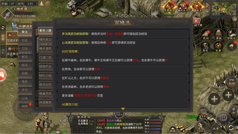 修炼武功:将功修炼至满级会获得元气,元气可以提升境界,境界越高,提供的属性加成越高。