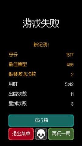 每局游戏随机生成骰子与牌组选项,失败后保留解锁进度,成功解锁新骷髅与牌型升级,带来新鲜感。