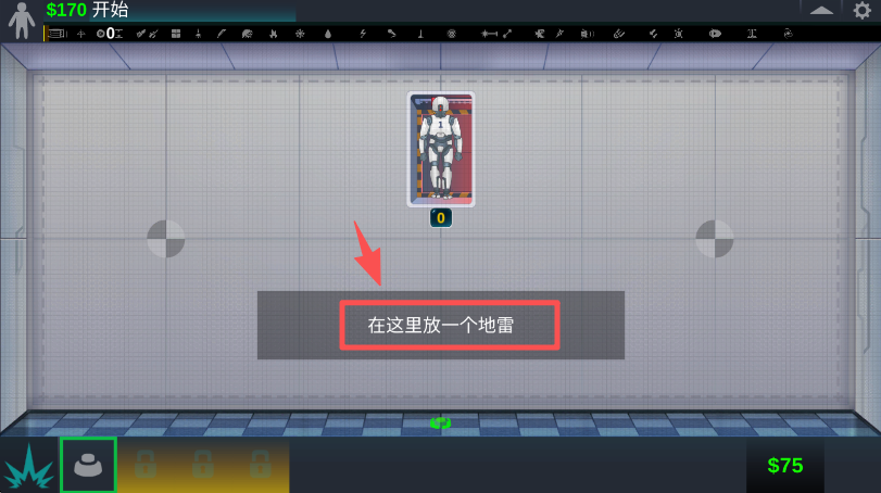 4、根据提示,点击 “在这里放一个地雷” 的区域,完成道具放置操作。