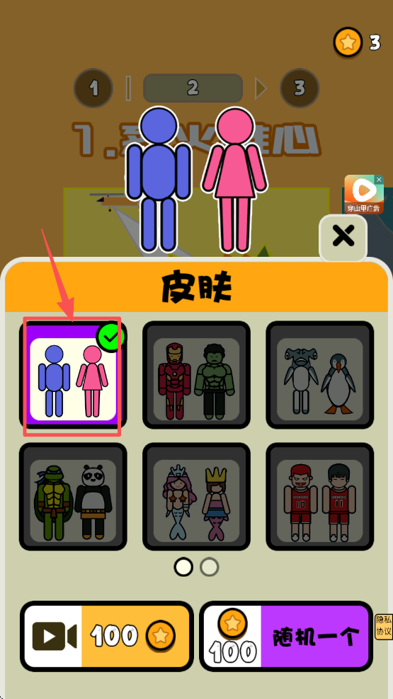 1、点击选择你喜欢的皮肤,个性化你的角色。这会让你在游戏中更加独特。