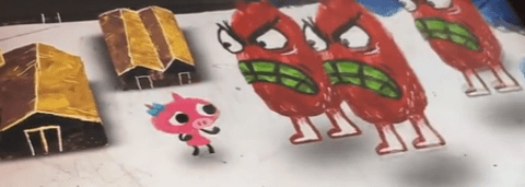 3、打败怪物的方式非常的简单只需要将喷嚏绿色的液体喷到怪物身上即可。