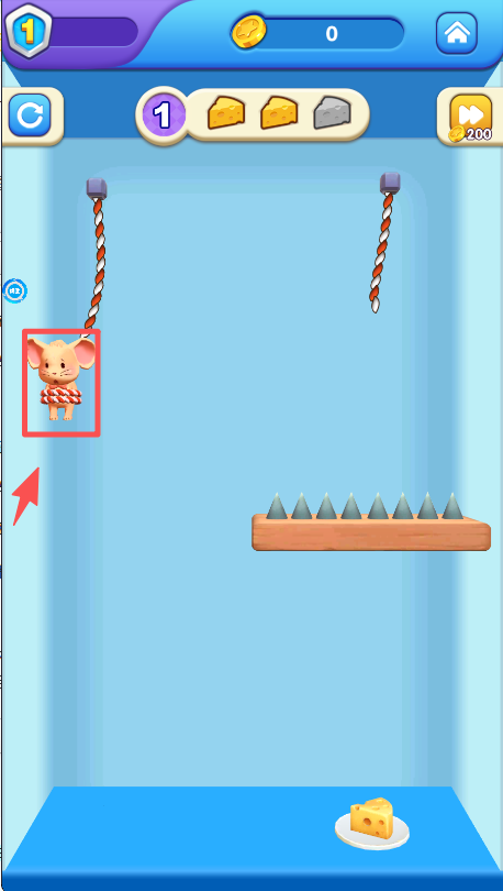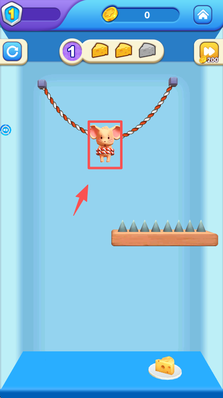 4、观察小动物下落轨迹,确保其避开尖刺陷阱,向奶酪所在的安全区域移动。