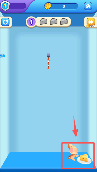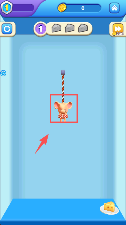 3、等待小动物成功下落到平台后,使其移动至奶酪处,完成本关的逃亡目标。