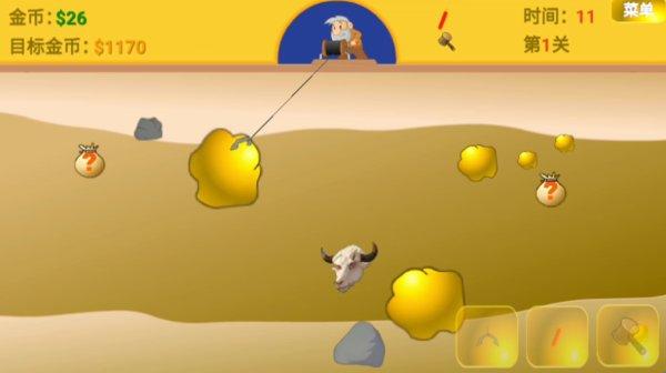 2、该游戏玩法简单,通过钩取地下的黄金、钻石等物品,达到目标分数即可获胜。