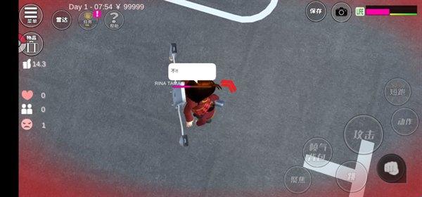 4、点击喷气背包按钮即可让角色飞行。注意在降落时避免撞到人群,以免引发麻烦。