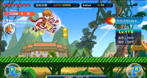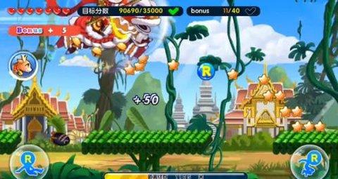 2、玩家可以操控左边的滑铲来躲避高出的藤条,右边可以跳高躲避下方的陷阱。