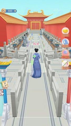 3、通过左右滑动屏幕控制小主移动。收集道路上的元宝、书籍、色子等物品,提升地位。