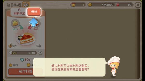 5、学习完成后,点击缺少的材料进入材料店,购买所需的食材。若希望快速获取,可使用钻石立即配送。