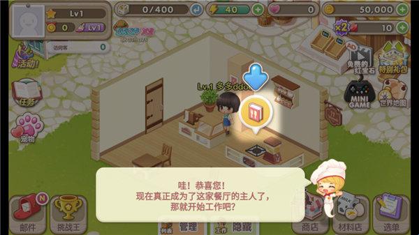 其内拥有50多个员工分甜品、主食、饮品等特长,玩家可通过默契组合和宠物辅助经营,共同构建高效团队。