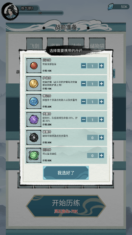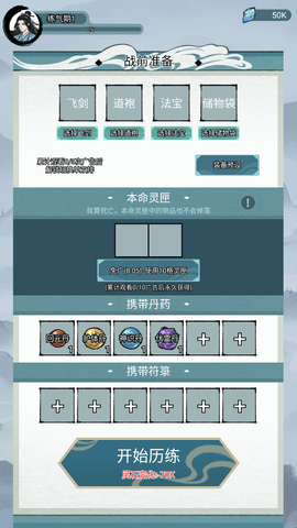 1、在正式开始历练之前我们需要做好战前准备,携带足够的丹药、符箓。