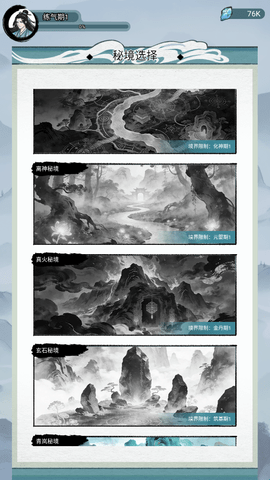 4、然后选择要历练的秘境。