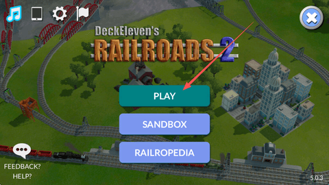 1、进入铁路帝国2(DeckEleven)点击中间的“PKAY”直接开始游戏。