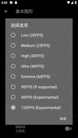 3、在图形设置界面中,找到并点击 “FPS” 选项。在FPS设置页面,勾选 “120FPS” 选项。