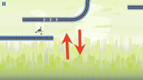 2、玩家点击屏幕让机器人吸附在跑道上,通过点击来完成跳跃。