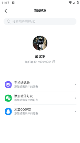 4、有三种方式加好友,手机通讯录、添加微信好友、添加QQ好友。