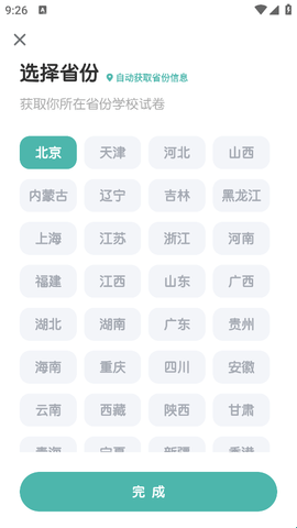 4、找到你所在的省份,点击下方的“完成”就能完成修改了。