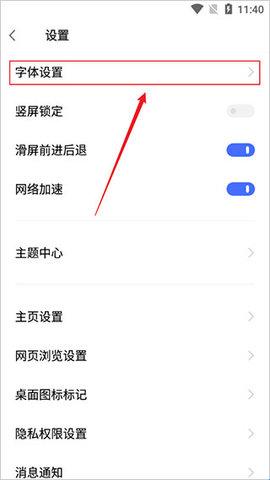 2、紧接着我们在设置页中找到【字体设置】,点击进入。
