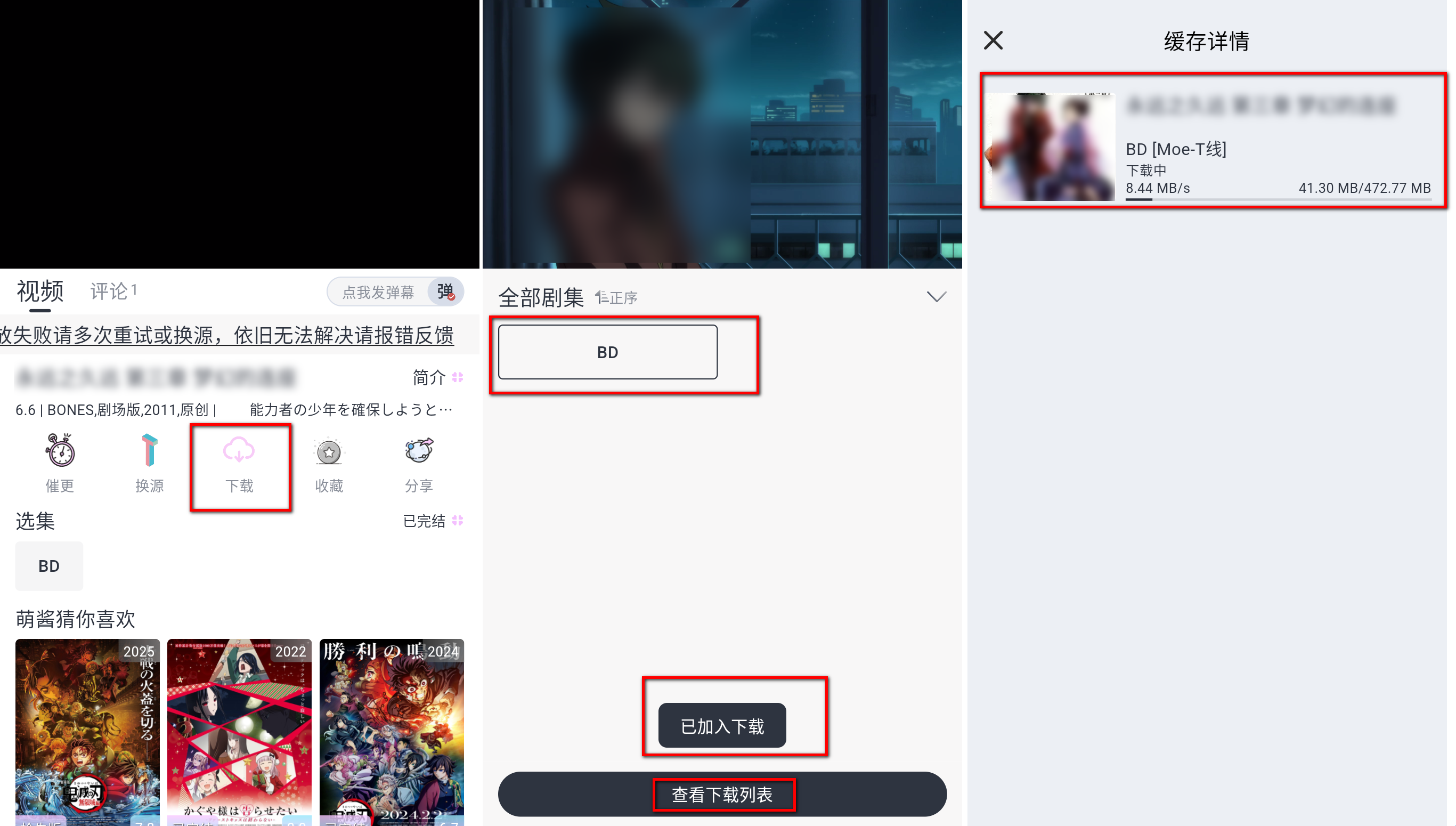 1、打开软件,播放你想缓存的动漫,点击下载。