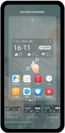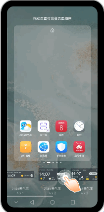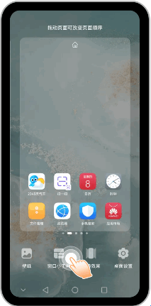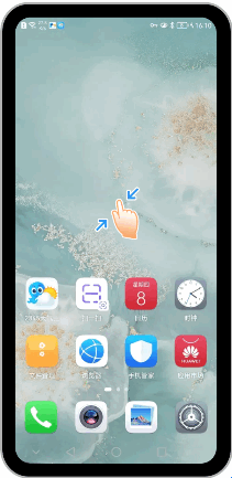1两指按住屏幕同时向中间靠拢,打开桌面编辑