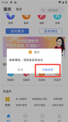 3、配音圈不需要用户四处寻找中间、客服来介绍业务,用户想什么时候配音都能在工具中选需要的配音。