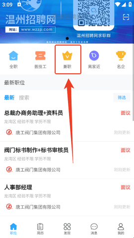 1、因为兼职岗位需求比较大,所以平台在职位首页专门新增设了【兼职】入口,直接点击进入。