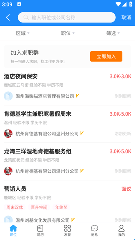 安卓温州招聘网app是一款专为温州本地打造的高效求职招聘平台,该平台可以帮助各位求职者快速筛选出温州当地的所有在招岗位,方便大家在线浏览寻找自己感兴趣的工作,并且还能直接在线投递简历,只需耐心等待企业回复就行。有了这款软件,以后温州本地的市民找工作就轻松许多。