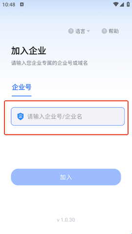 用户进入软件后需要输入正确的企业专属企业号或者域名