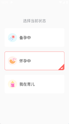 3、再次选择选择此时的状态,如备孕、怀孕前后期等关键词。