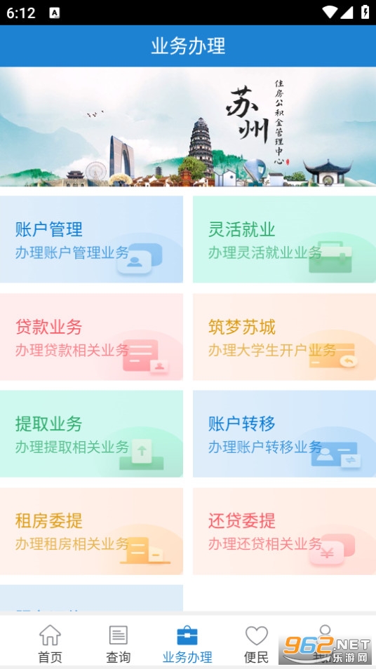 2.打开苏州公积金app,选择业务办理