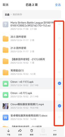 2、在我的文件中选择需要的文件内容,进行点击勾选。