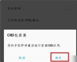 3、选择完成后,手机将弹出一个对话框,以确认GMS软件包的安装。 选择确定后,电话将重新启动并安装GMS。