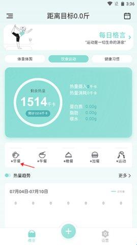 1、打开豌豆体重记app,你可选择饮食运动那一栏。