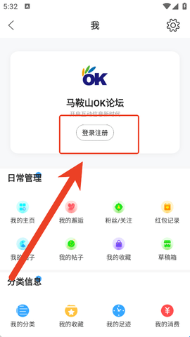 1、马鞍山ok论坛首页界面点击左上角的“我的”。