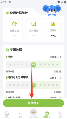 3、当然你也可以前往“易错分析”去刷题,点击【前往练习】吧。