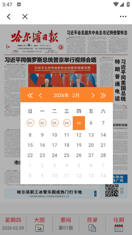 5、点击右下角“往期”,选择时间,还能读之前的报纸。