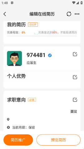 3、大家在这里就可以去完善自己的简历信息。