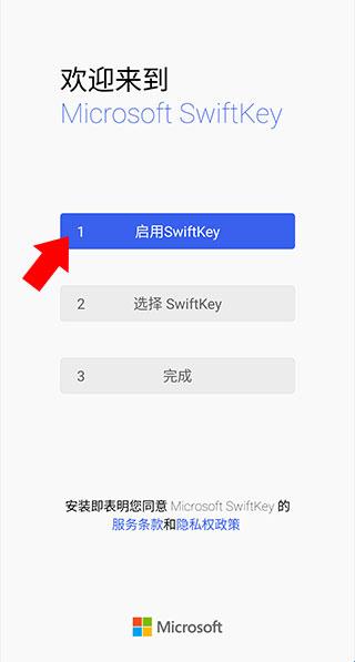 1、下载并打开微软输入法来到下方界面,点击第一步启用微软输入法。