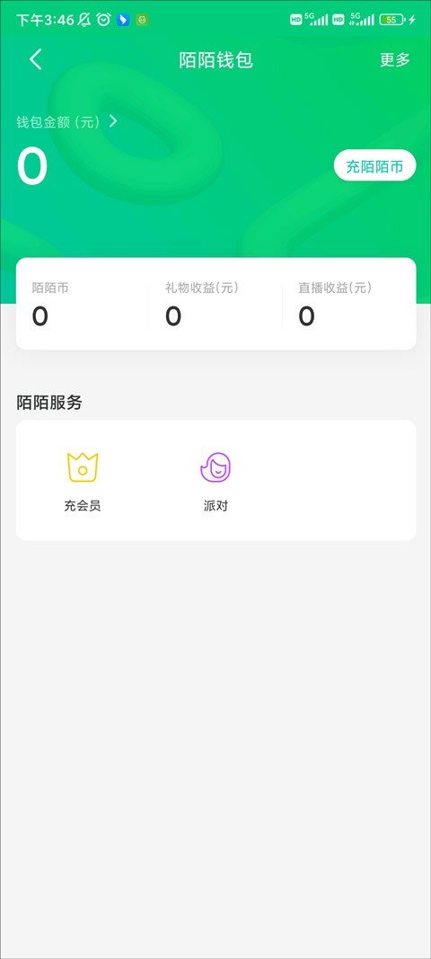 3、点击钱包页面右上角的“充陌陌币”按钮开始操作流程。