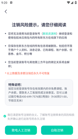 4、这里有“致电人工注销”和“自助注销”两种方式,可以自己选择。