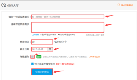 PS:任务置顶为增值服务,为消费型服务,不在托管赏金内,请根据您的实际情况选择是否置顶。