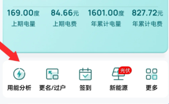 1、进入软件首页中点击“用能分析”。