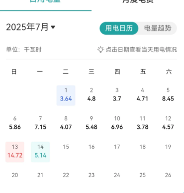 5、清晰的可以看到每日的用电状况。