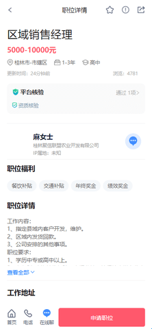 3、浏览找到自己感兴趣的工作后点击进入就可以“申请职位”,去投递简历了。
